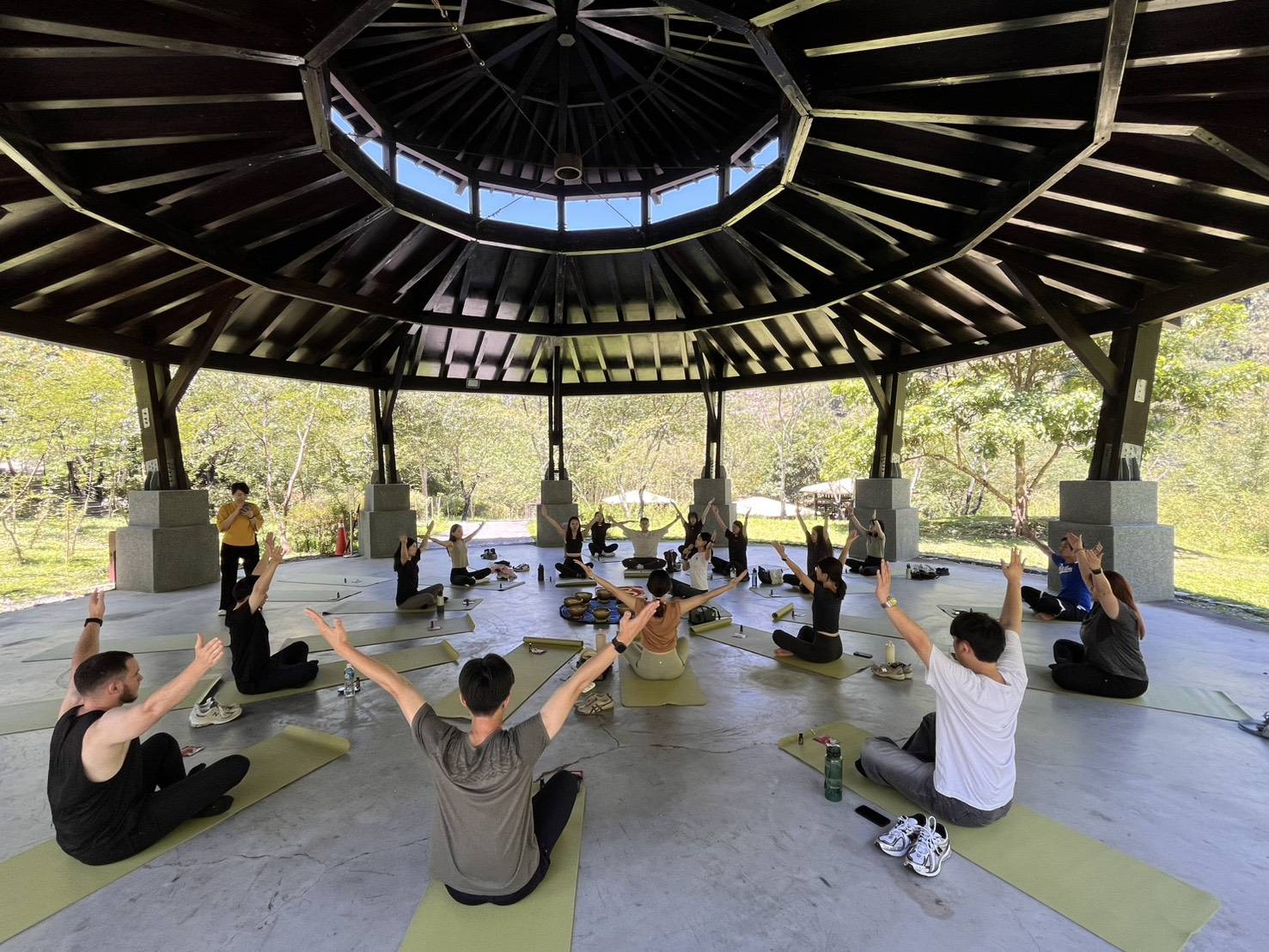 透過瑜珈,讓身與森林共舞;透過頌缽,讓心與森林共鳴。