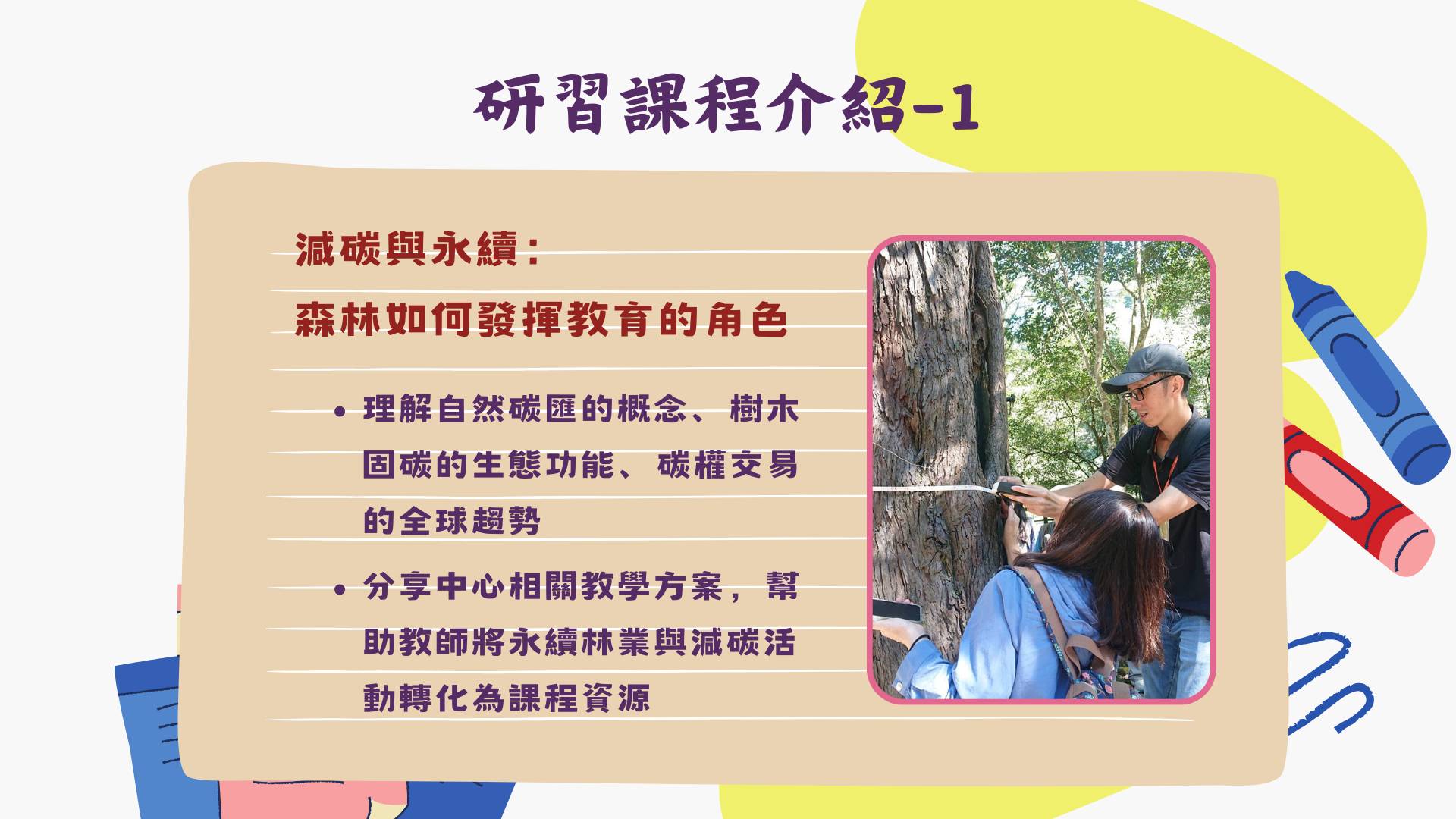 本課程旨在協助教師理解自然碳匯的概念、樹木固碳的生態功能與碳權交易的全球趨勢,並進一步思考如何在環境教育中,將永續林業與減碳行動轉化為具體的教學資源。