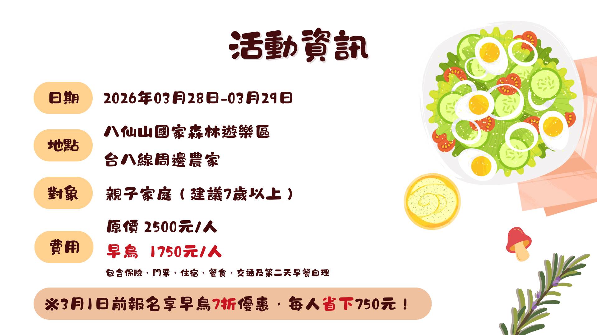 認識新社香菇產業的發展史,並體驗好玩的採香菇、撿雞蛋、製作香菇蒸蛋的食農遊程!