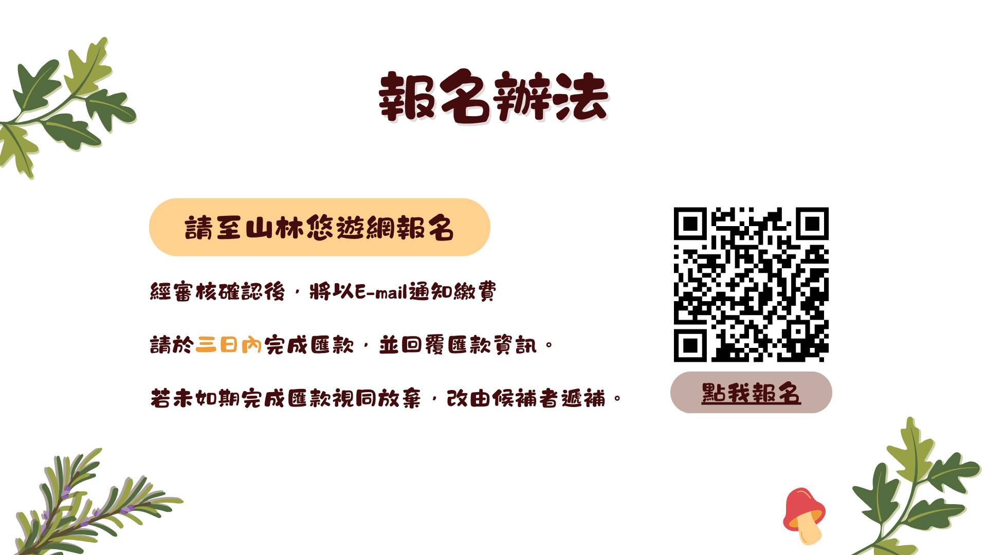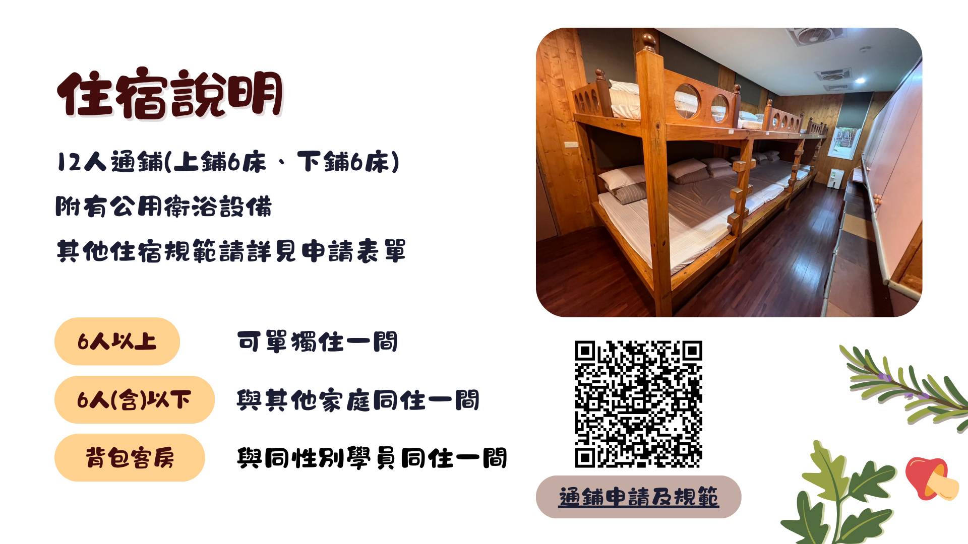因通鋪住宿空間有限,將依照系統報名順序安排,敬請見諒!