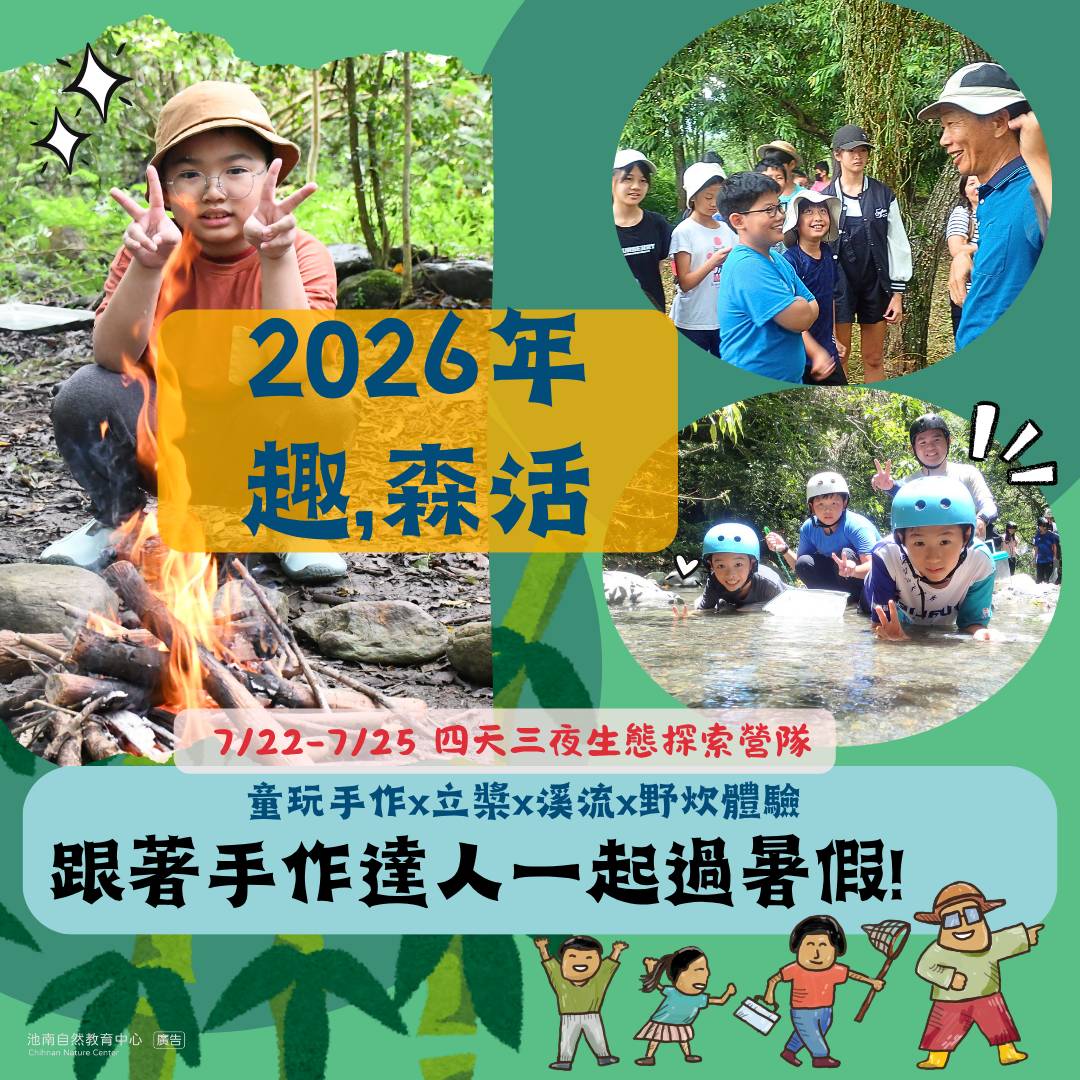 「趣,森活-童玩手作X立槳X溪流X野炊體驗」4天3夜生態探索營