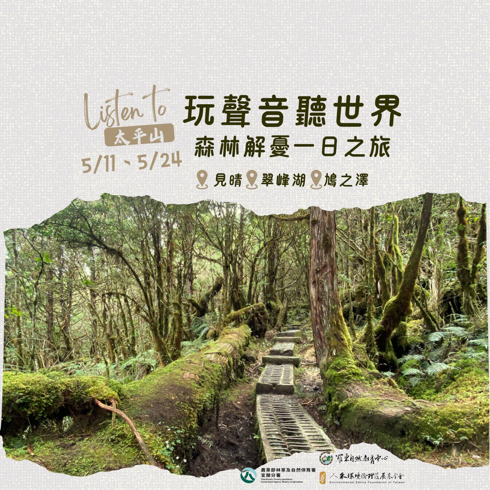 🔹 【見晴懷古步道|聲音療癒地圖】 在世界最美小徑的見晴步道,我們將關掉視覺的干擾,透過專業講師引導體驗「聲景繪圖」,讓你的耳朵打開,重新學習如何專注,發現森林裡的每一個聲音,都在為你紓壓。