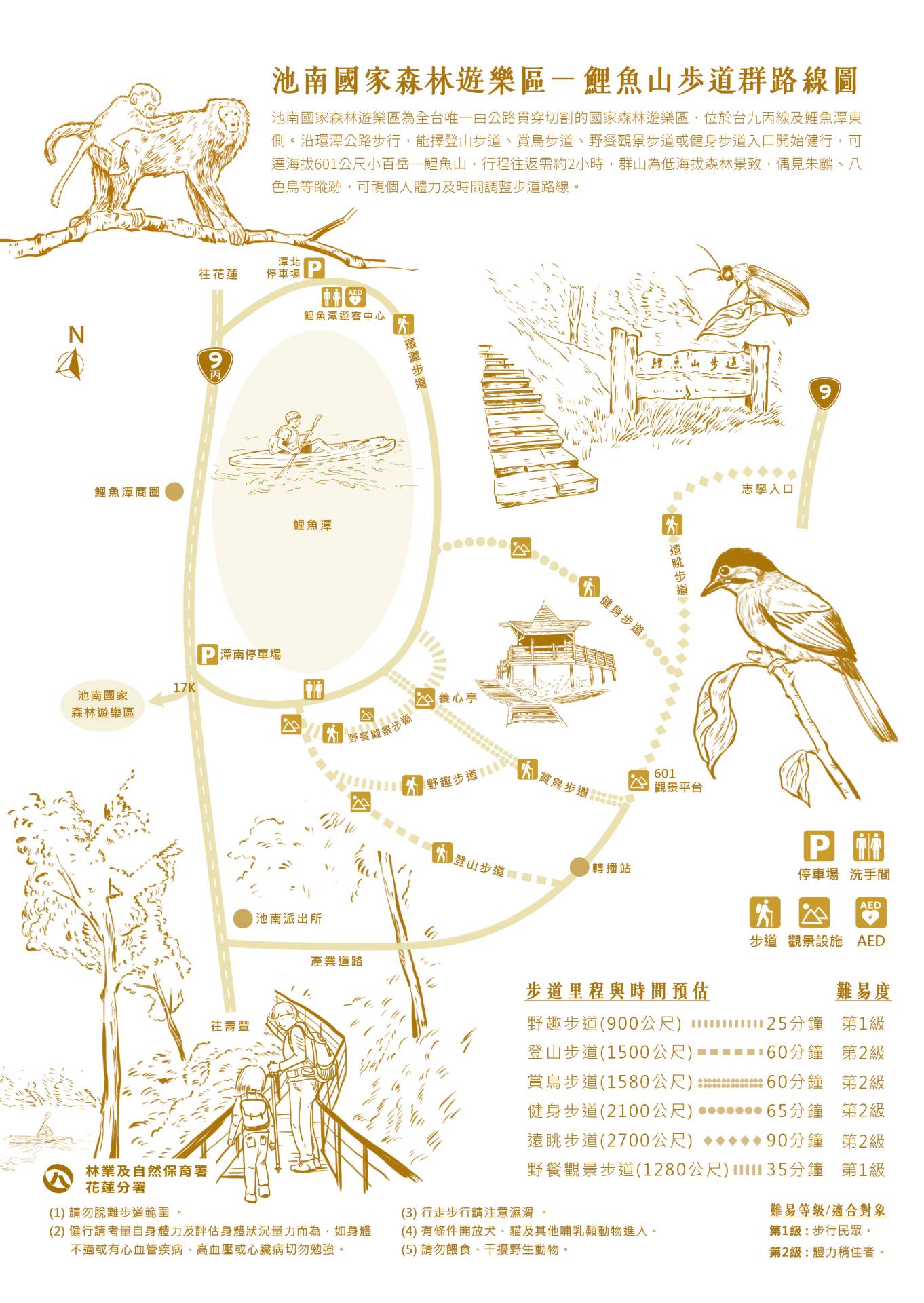 抵達潭南遊憩區站->(步行10分鐘)->池南國家森林遊樂區