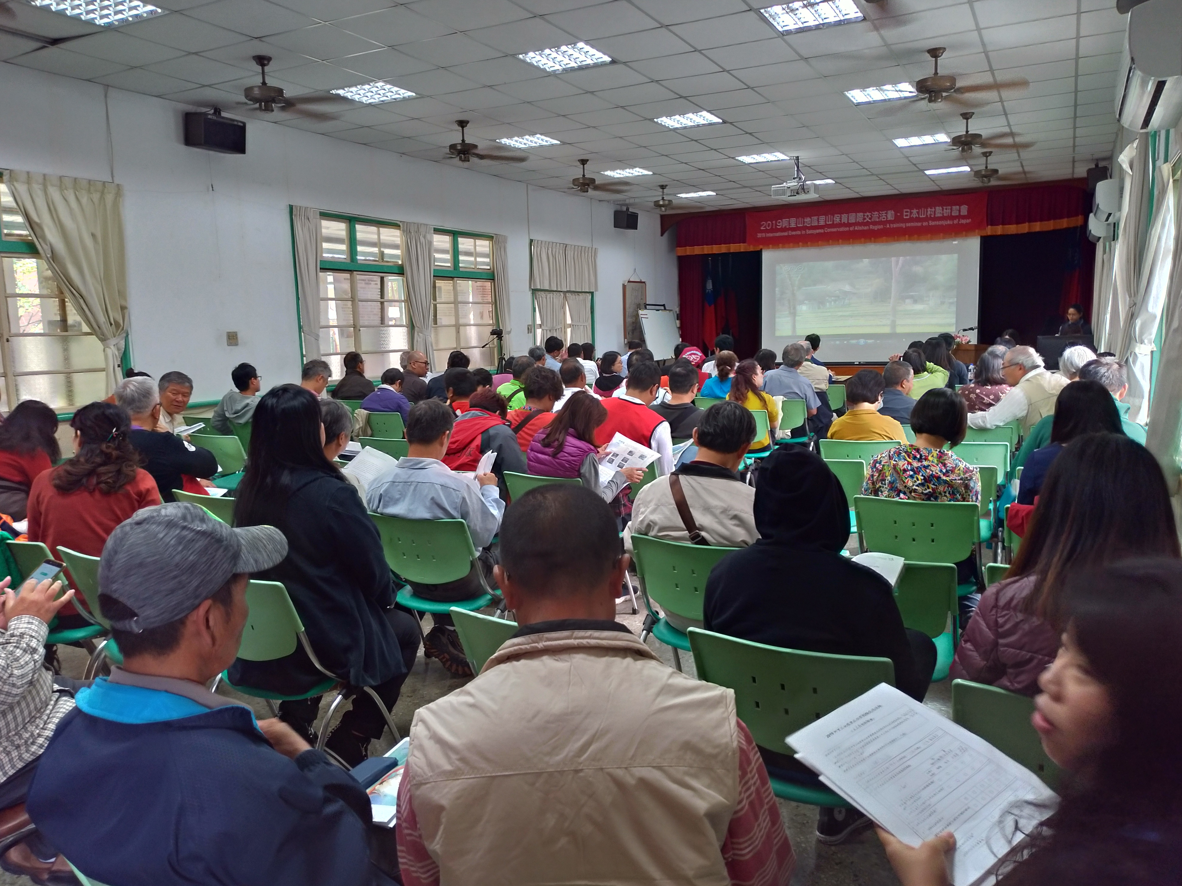 嘉義林區管理處於今(18)日在大禮堂辦理里山保育國際交流活動,邀請日本九州大學朝廣和夫教授及山村塾事務局小森耕太執行長分享日本九州地區-山村塾25年來的經驗,現場並展出長期參加社區林業計畫的社區成果,近百位公部門、社區夥伴及學界人士共同參加研習與交流。