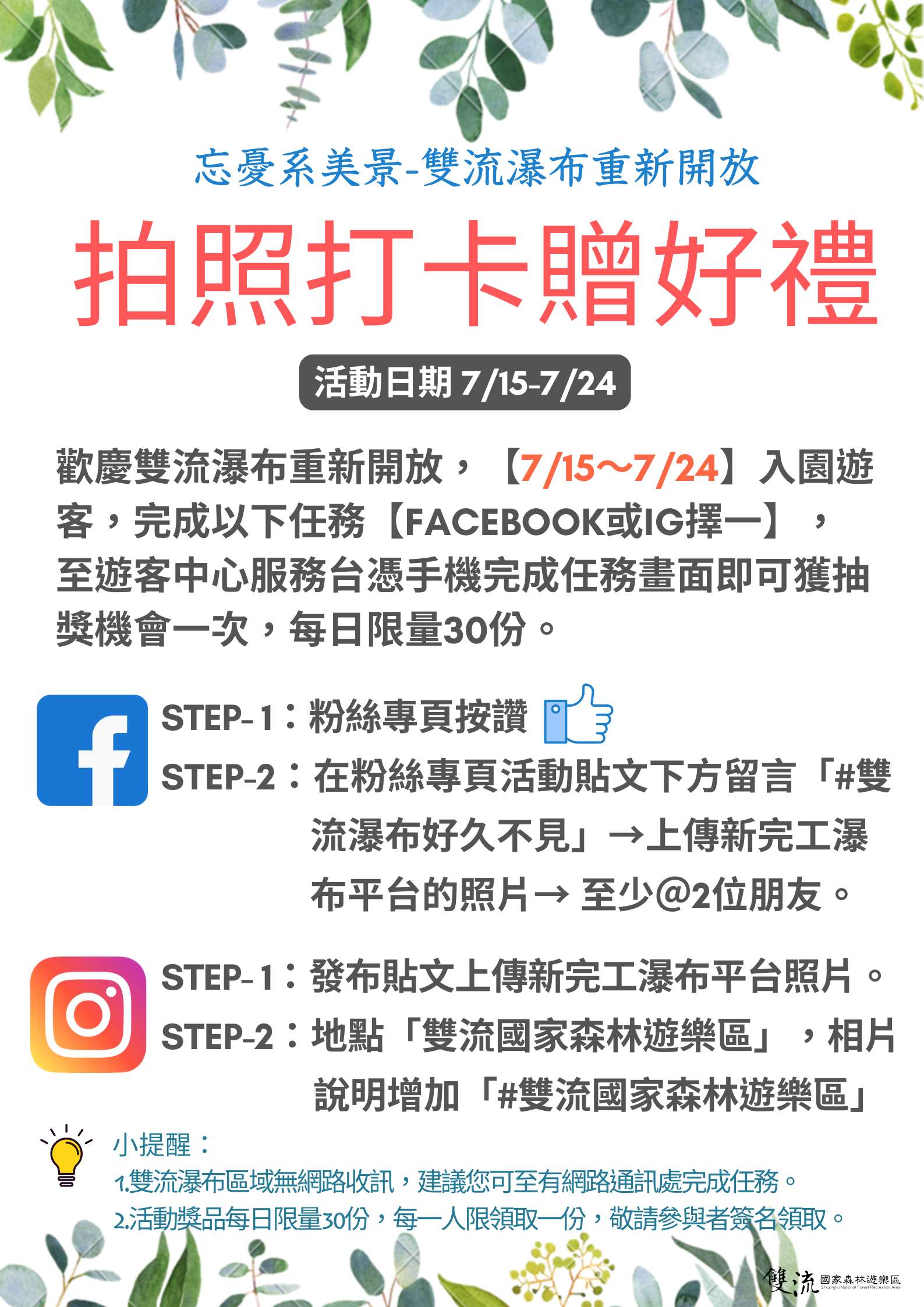 【✨✨忘憂系美景—雙流瀑布重啟開放!拍照打卡抽好禮🎁】
