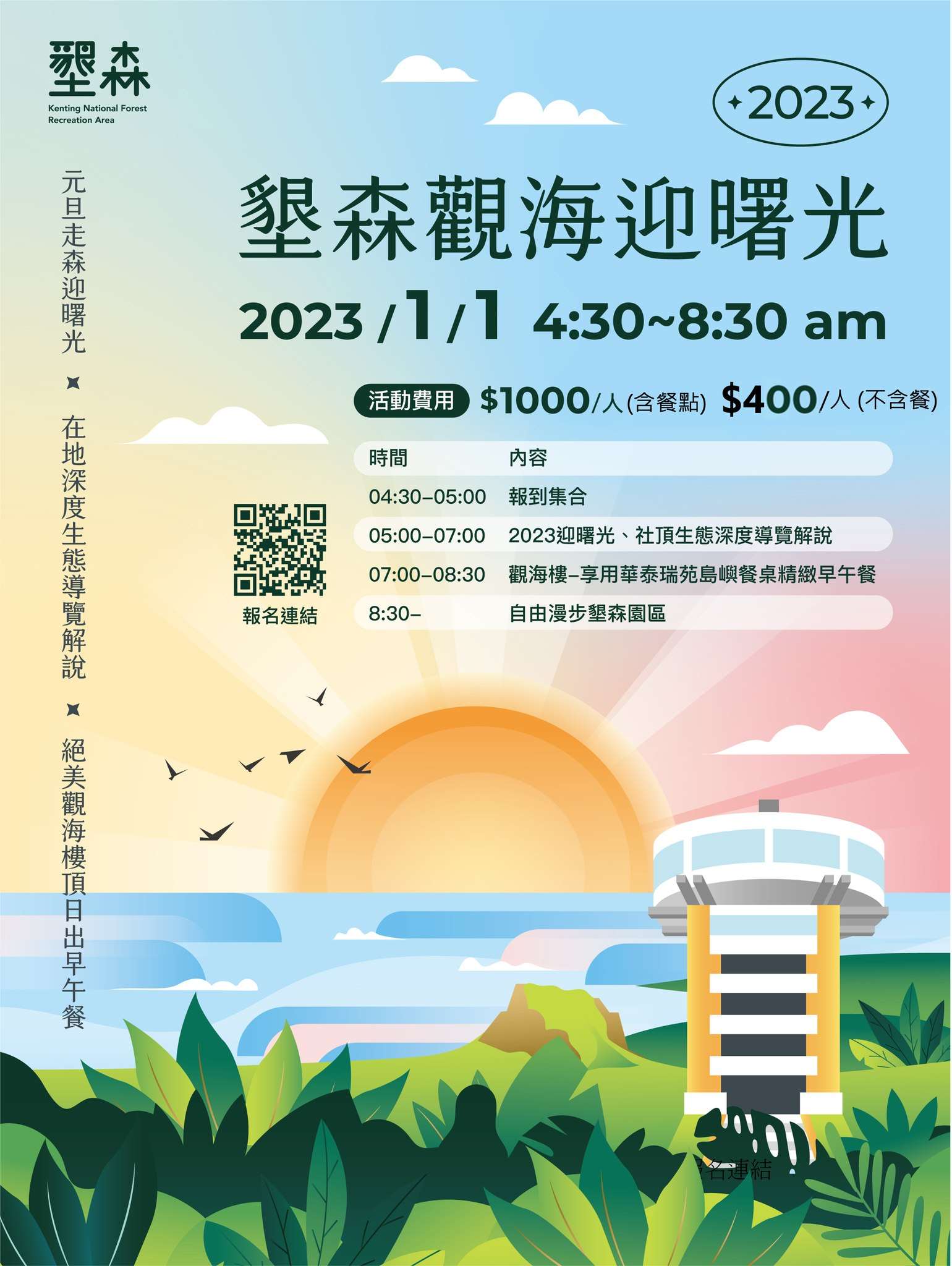 ※費用包含園區門票、獨家墾森迎曙光、社頂生態解說、(觀海樓華泰瑞苑精緻內用早餐一客)