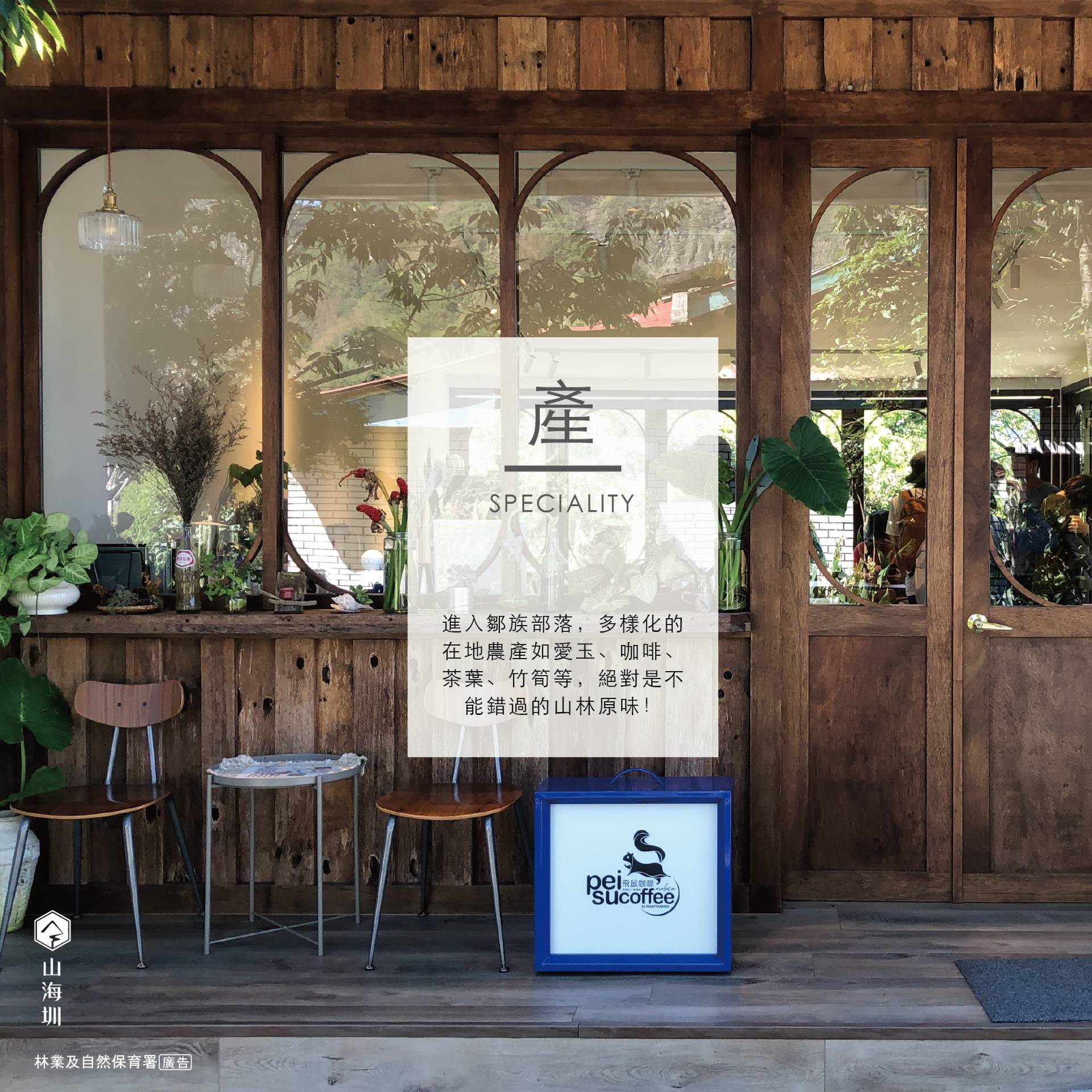 鄒族地區擁有豐富的農產,展現出與山林和土地密切的連結。近年鄒族特富野、達邦、茶山等部落青年回鄉打造秘境咖啡店,作為部落創生基地,以青年力行銷在地物產,傳遞地方共好理念。