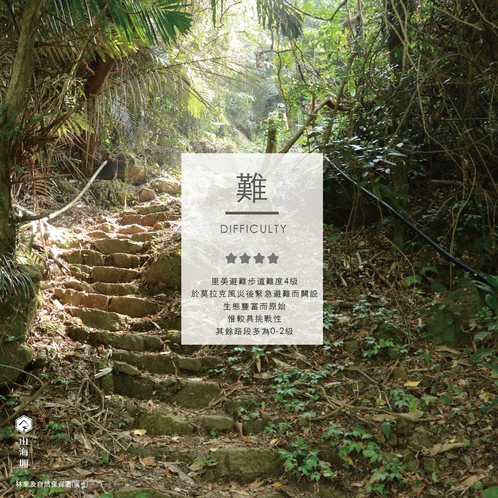 原鄉之路共有12小段,其中難度最高的路段為4級的里美避難步道,昔日為鄒族里佳與山美部落遷徙往來的古道,因日治時期開闢較為平緩的里美步道而荒廢,直到莫拉克風災重創里美步道而中斷部落聯繫,經居民建議恢復古道以作為山區緊急避難之用,修復後命名為「里美避難步道」。